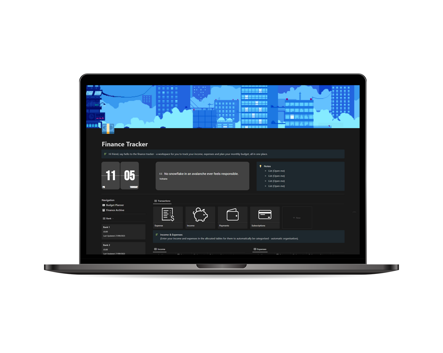 Say hello to your all-in-one finance tracker, it is designed to help you organise your finances efficiently and effortlessly.