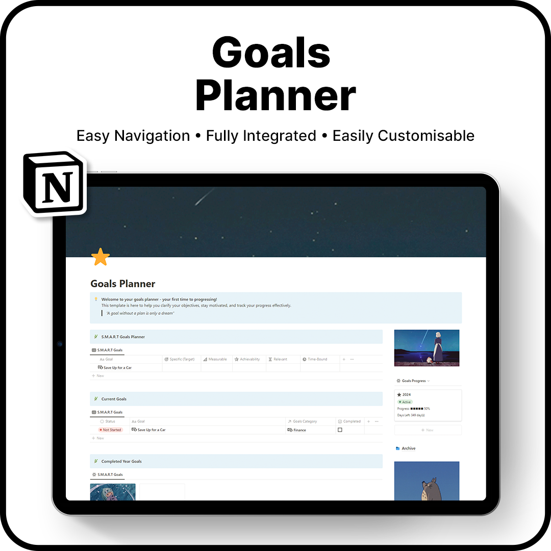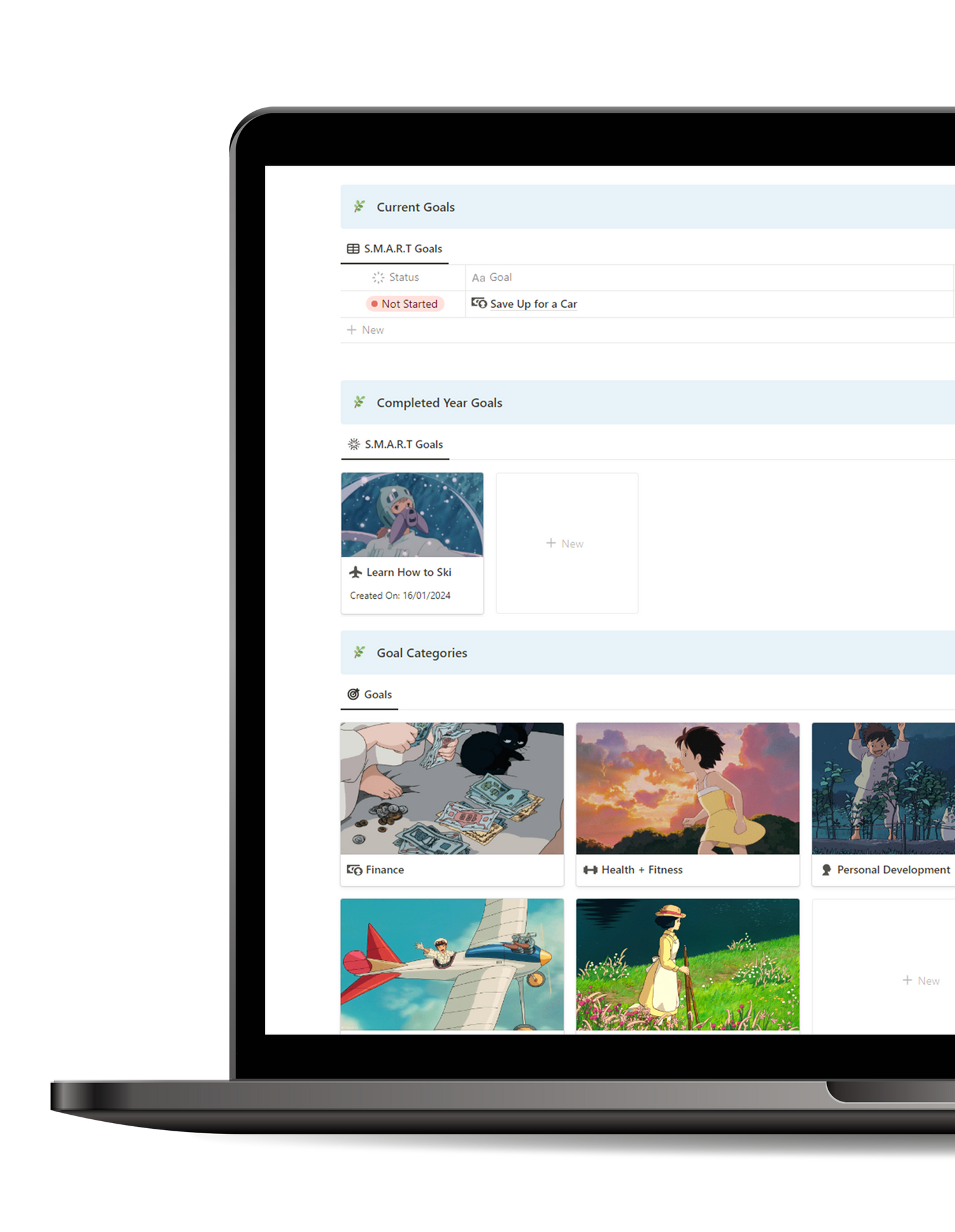 Plan towards your road of success, and have fun doing it, a planner inspired by Studio Ghibli-inspired, your goal planner. This planner effortlessly applies the S.M.A.R.T. method, making goal-setting Specific, Measurable, Achievable, Relevant, and Time-bound. Planning your goals and thinking of the future can be scary, but there's no scary Yubaba or a fully-fed No Face here. Your goals are encouraged to be serious and realistic but also fun and easy to plan.